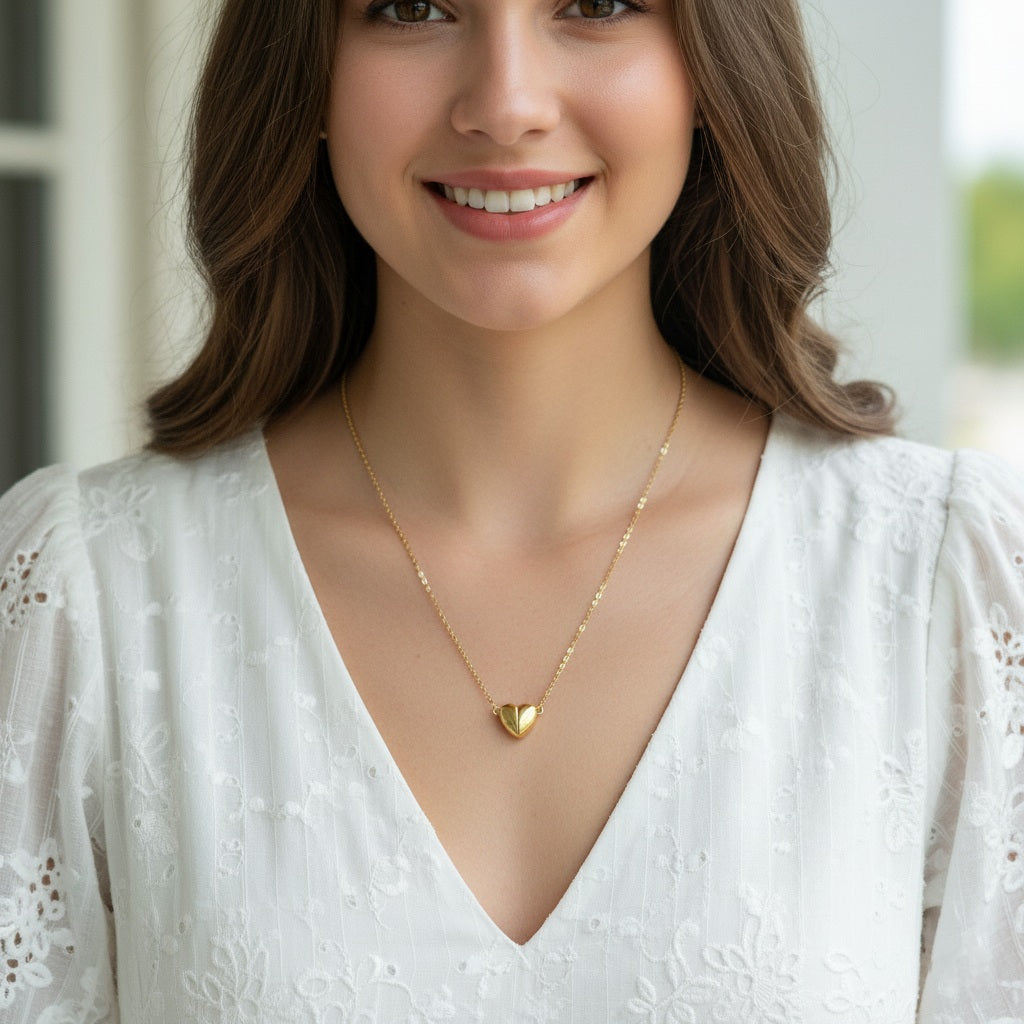 The Magnetic Heart Necklace showcases two polished half-hearts that seamlessly connect, symbolizing unity and connection. This minimalist, elegant design is a refined expression of love and friendship.